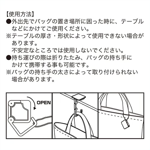 カフェやレストランでバッグやポーチ、折りたたみ傘などを安心して置けるようするアイテムです。