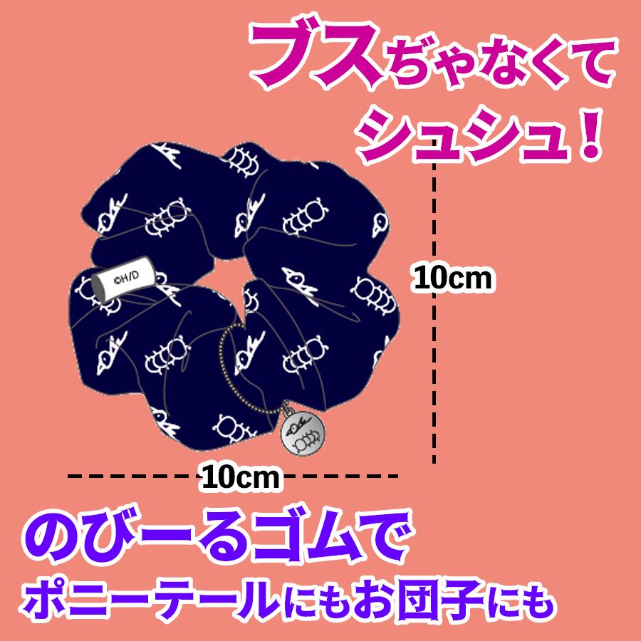 ~ドーナツ状の布にゴムを通した髪飾り…フランス語の「chou(キャベツ)」が語源とか…ポニーテールなどのヘアスタイルで髪留めにするほか、ブレスレットとして使うも良し